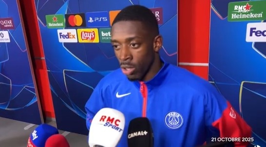 10月22日讯 本轮欧冠,十人巴黎7-2客胜十人勒沃库森。赛后巴黎前场球员登贝莱接受Canal+采访。