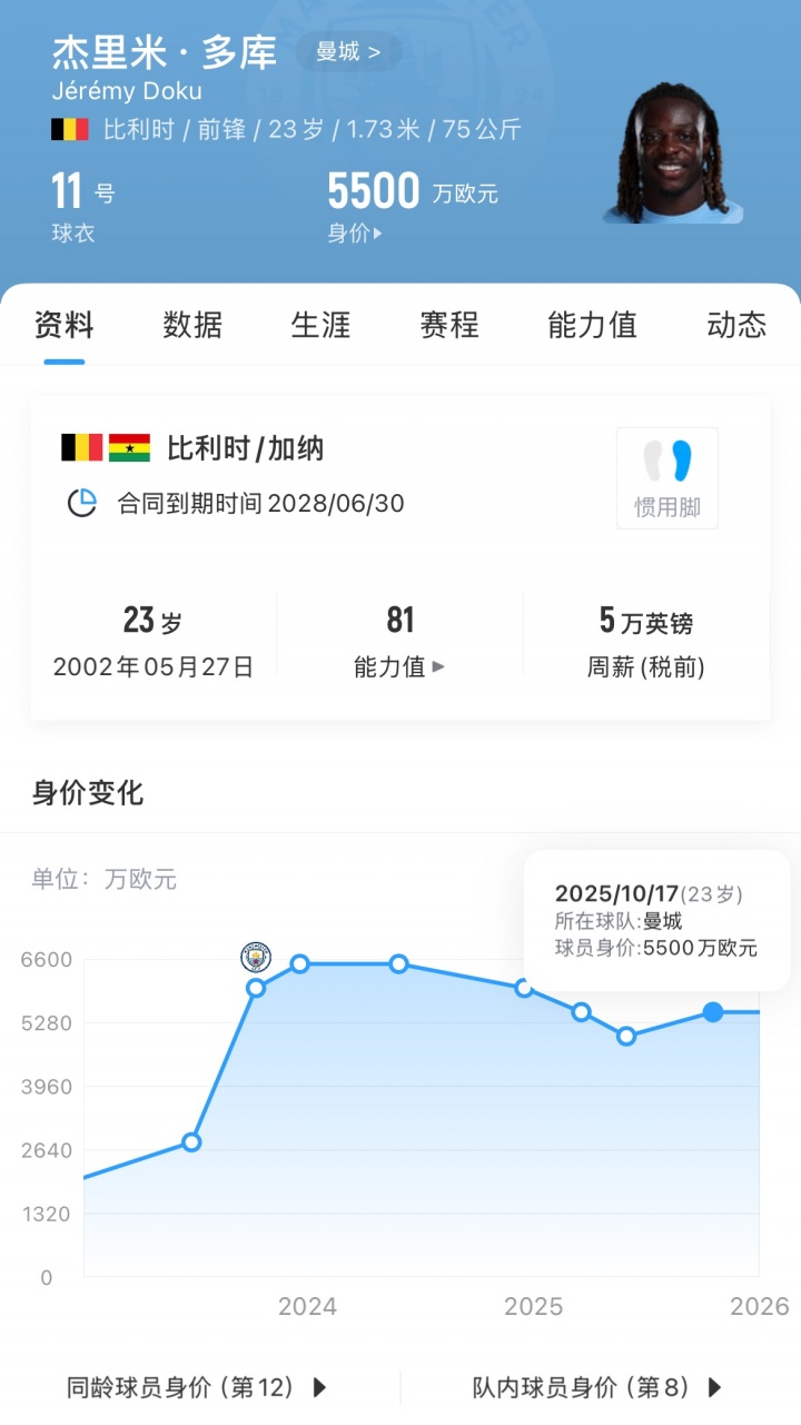 多库于2023年夏天以6000万欧的转会价格从雷恩加盟曼城,当时21岁的多库与签约五年直至2028年夏天。