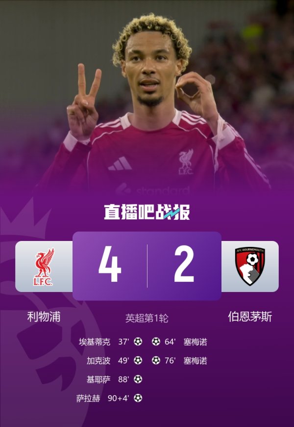 玄学!利物浦开赛4轮3场致胜球 (88/100/95),1场83分钟神仙球制胜新赛季英超德甲官网中文版,利物浦开赛四轮赛事 ,3场致胜球 (88分钟/100分钟/95分钟),1场83分钟神仙球制胜! 英超第1轮,利物浦4-2伯恩茅斯,基耶萨88分钟致胜球 ,萨拉赫94分钟锁定胜局! 英超第2轮,纽卡斯尔2-3利物浦!恩古莫哈100分钟致胜球 ! 英超第3轮,利物浦1-0阿森纳!索博斯洛伊83分钟定位球世界