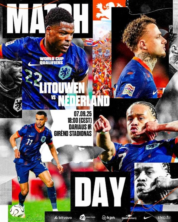 世预赛将战立陶宛,荷兰队官方发布赛前海报欧冠最新战报 9月7日讯 北京时间9月8日凌晨0:00,世预赛欧洲区小组赛G组,荷兰队客场应战 对阵立陶宛。赛前,荷兰队官方发布赛事 海报。 目前,荷兰队在G组2胜1平积7分,少赛1场暂居小组第一。 欧冠最新战报