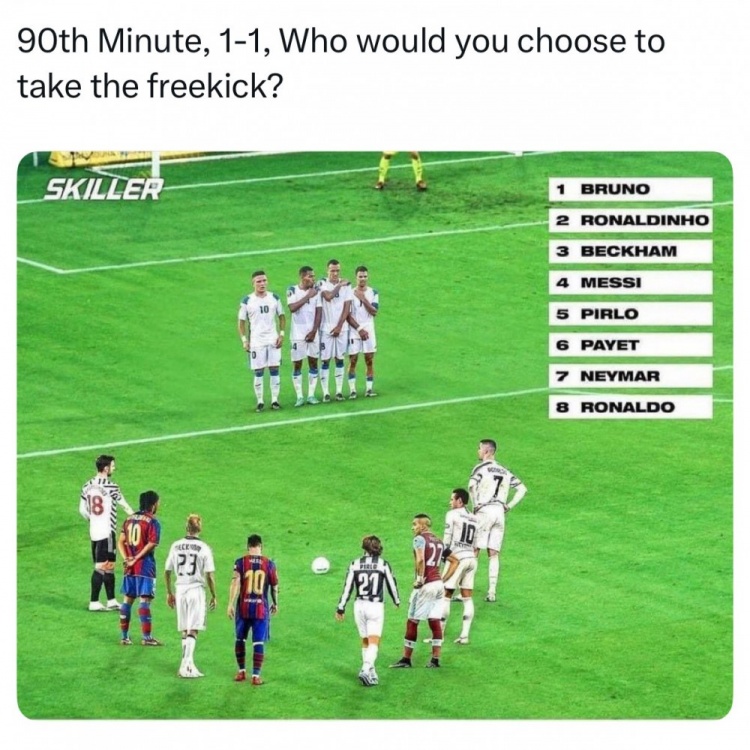 C罗、内马尔、帕耶、皮尔洛、梅西、贝克汉姆、小罗……还是B~~~~~~~~费~~~~~~?