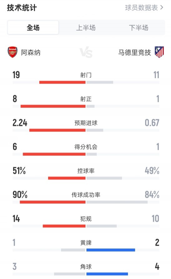 全场赛事 数据如下: