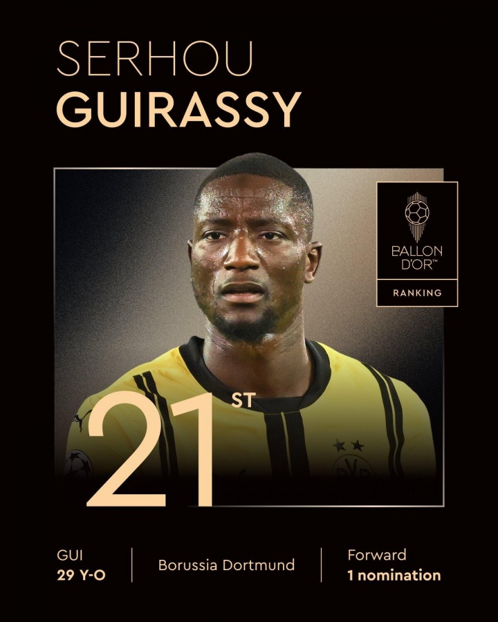 21、吉拉西(多特蒙德/几内亚、29岁、第一次获得提名)