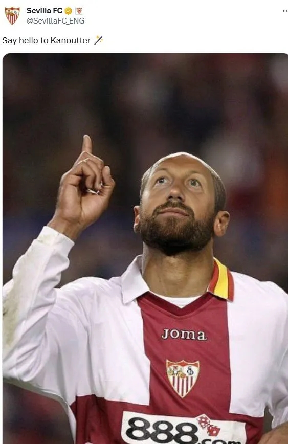 而塞维利亚俱乐部也加入了这场玩梗:他们在官方社媒中贴出了一张同是赛维、西汉姆两队旧将的卡努特的照片,并将他的脸P成了波特。