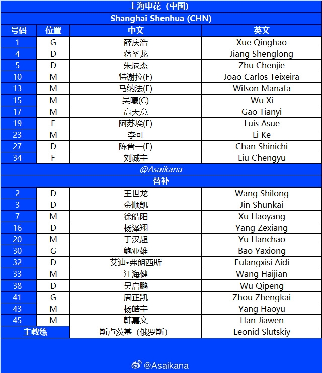 10月01日讯 亚冠精英职业联赛 东亚区第2轮,上海申花vs蔚山HD,赛前杆位阵形 公布。赛事 将于20:15开球。