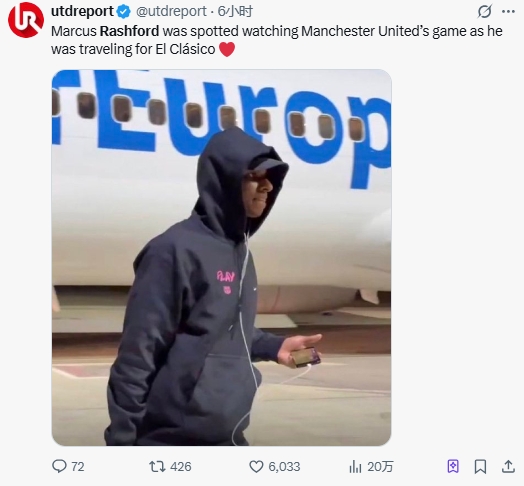 10月26日讯 今晚,拉什福德将迎来他的第一次西班牙国家德比,昨晚他和队友着地 马德里,在下飞机时被发现正在用手机看球。
