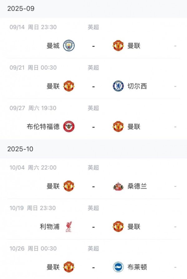 能拿几分?曼职业联赛 程:9月客战曼城、主场作战 战切尔西,10月踢利物浦