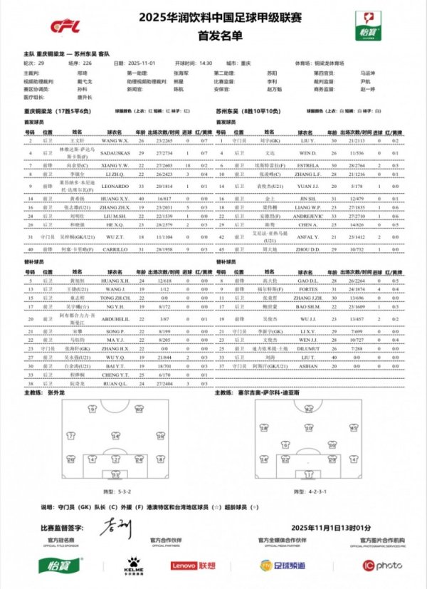 重庆铜梁龙vs苏州东吴杆位:莱昂纳多先发 周大地、艾尼法出战11月1日讯 中甲第29轮西甲新闻,重庆铜梁龙主场作战 对阵苏州东吴。赛前,官方公布了双方的杆位名单。 重庆铜梁龙杆位:31-吴梓桐、2-王文轩、4-萨达乌斯卡斯、24-刘明仕、26-和晓强、8-李镇全、14-黄希扬、16-张志雄(U21)、7-向余望、9-莱昂纳多、40-何塞-卡里略 重庆铜梁龙后备 :23-张海轩、5-黄旭恒
