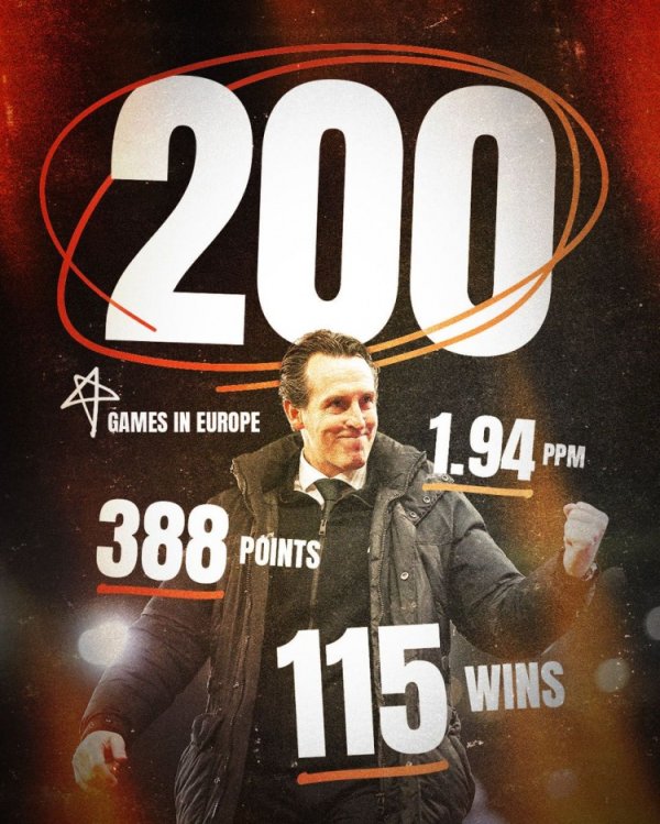 埃梅里完成执教生涯在欧战的200场里程碑,共取得115场获胜 388分德甲新闻 10月3日讯 阿斯顿维拉官方发布海报,祝贺主指导教练员埃梅里完成执教生涯在欧战的第200场里程碑。 在这200场赛事 中德甲新闻,埃梅里总共拿到388个积分,场均1.94分,赢下了115场获胜 。