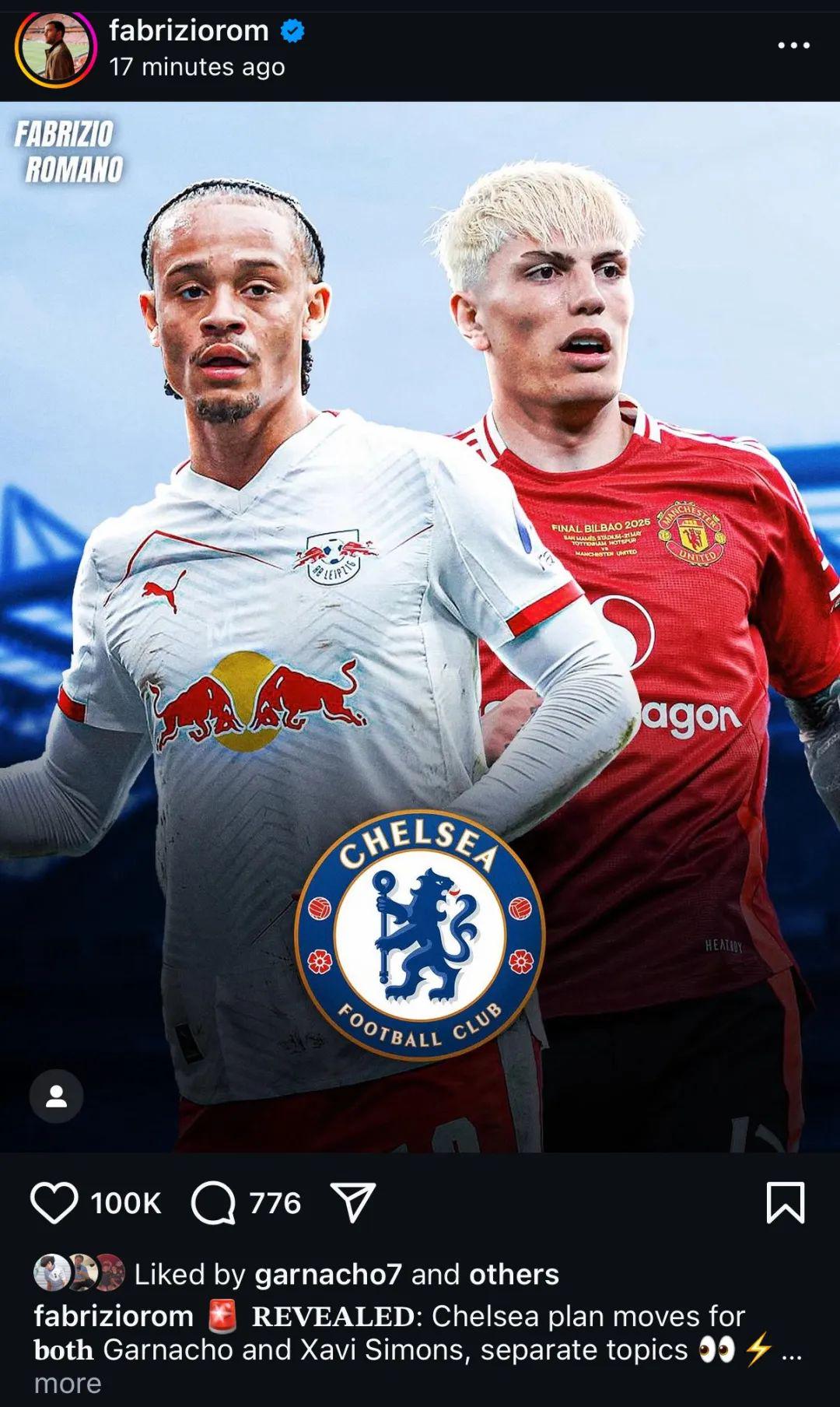 值得一提的是,罗马诺的这一报道得到了加纳乔本人的亲自点赞,他一心等待切尔西的立场得到了确认。