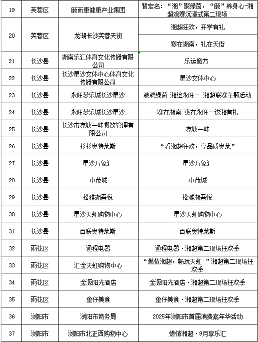 △2025湘超职业联赛 长沙赛区“第二现场”促消费活动汇总表(持续更新,以主办方信息为准)。