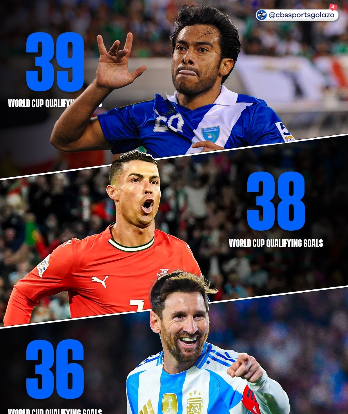 就在C罗创造记录 的前一天,梅西也在世预赛南美区赛事 中大放异彩。9月5日,阿根廷3-0战胜委内瑞拉的赛事 中,38岁的梅西同样完成连进两球,当时将自己的世预赛总得分 数提升至36球,一度追平了C罗的记录 。