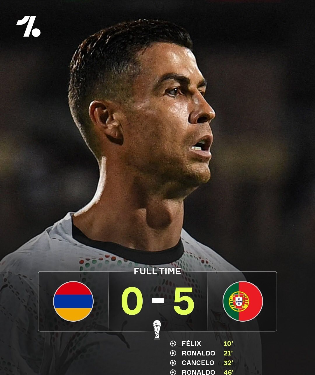 世界杯赛 欧洲区预选赛第一阶段小组赛第5轮上演一场焦点战。亚美尼亚主场作战 迎战葡萄牙足球新闻资讯,最终葡萄牙5-0大胜对手。