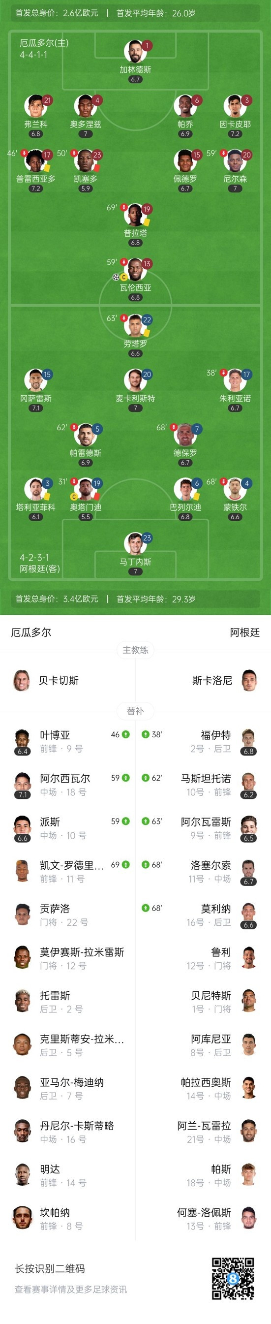 下半场补时5分钟,厄瓜多尔1-0阿根廷。