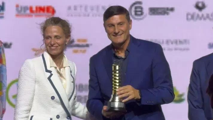雷速体育9月11日讯 据意大利媒体FCinter1908报道,国际米兰俱乐部副主席、前领队 及俱乐部旗帜人物萨内蒂,在第30届意大利绅士奖的颁奖典礼上最新足球消息,获得了30年传奇绅士奖。