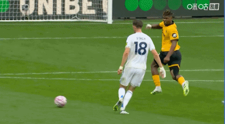 第39分钟,世界波!施塔赫任意球得分,利兹联2-1反超狼队
