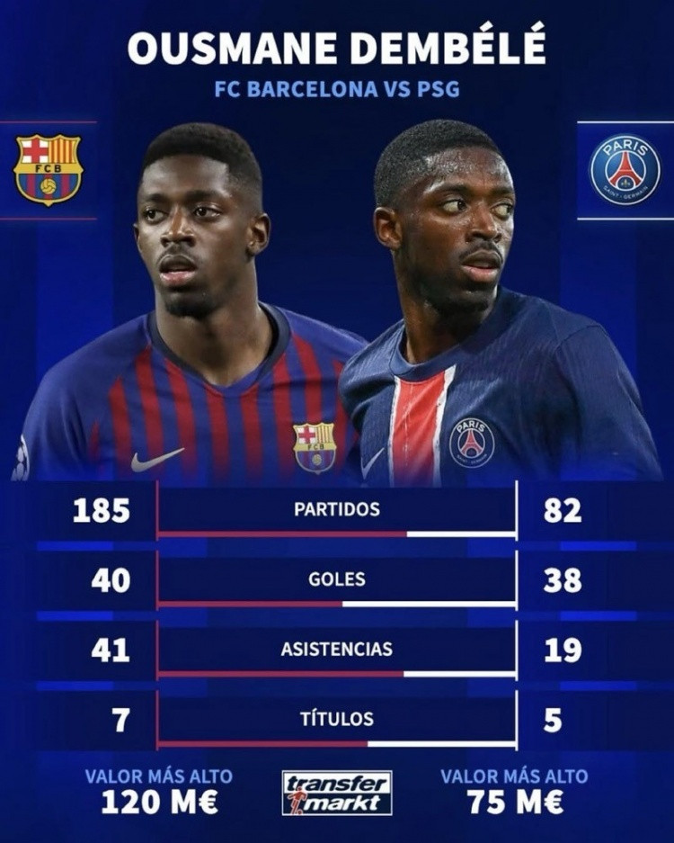 49场赛事 10个得分 是登贝莱交出的成绩单,虽然看起来没那么“耀眼”,可他实际价值比数字可是大多了。彼时,也有不少豪门发出邀请,那会他的经纪队伍 堪称是绿茵界“最忙碌”的人。