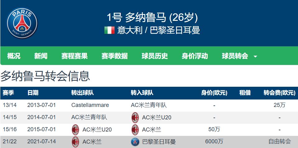 时光如梭,多纳鲁马自由身离开AC米兰加盟巴黎已经4年,上赛季多纳鲁马高扑低挡,帮助巴黎夺得三冠王(欧冠+法甲+法国杯)。多纳鲁马与巴黎的合同已经仅剩下1年,双方至今仍没有完成续约,这意味着多纳鲁马明年夏窗有望再一次自由转会离队去拿免签的签字费。