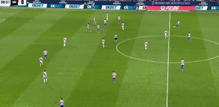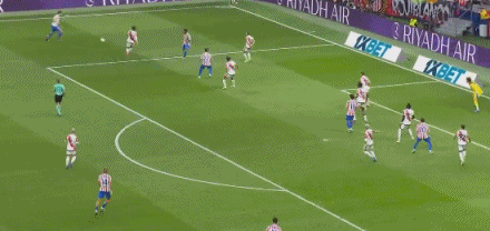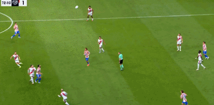 第39分钟,格列兹曼边路传中,阿尔瓦雷斯包抄抢点打高