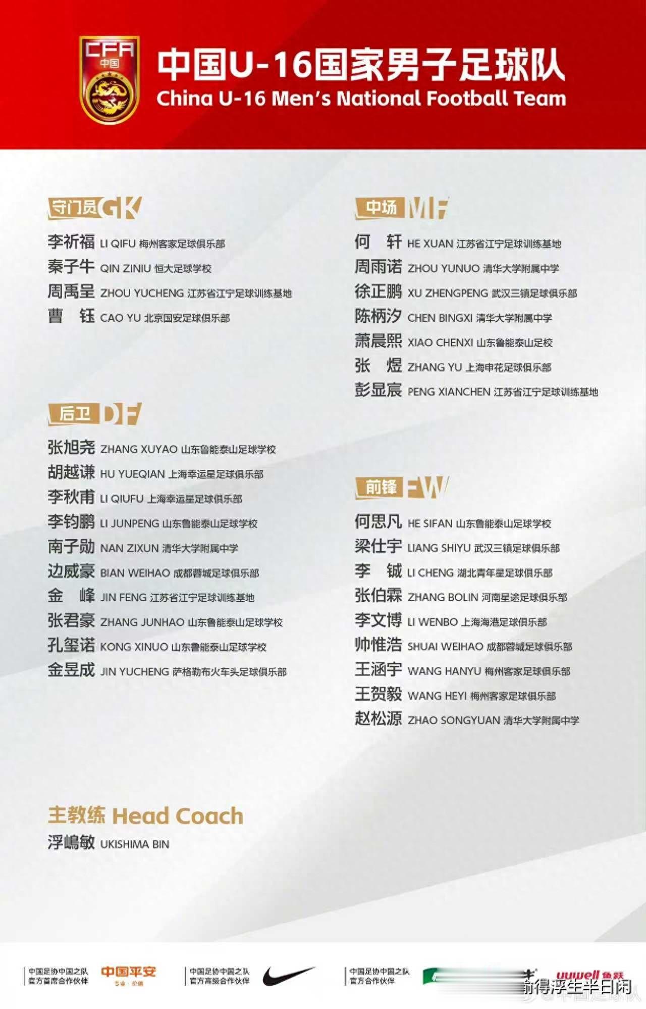 前场球员线:和平杯和蒙太古杯的几个主力都入选了!帅惟浩,何思凡,梁仕宇以及张伯霖。期待他们几个继续给国少建功立业!