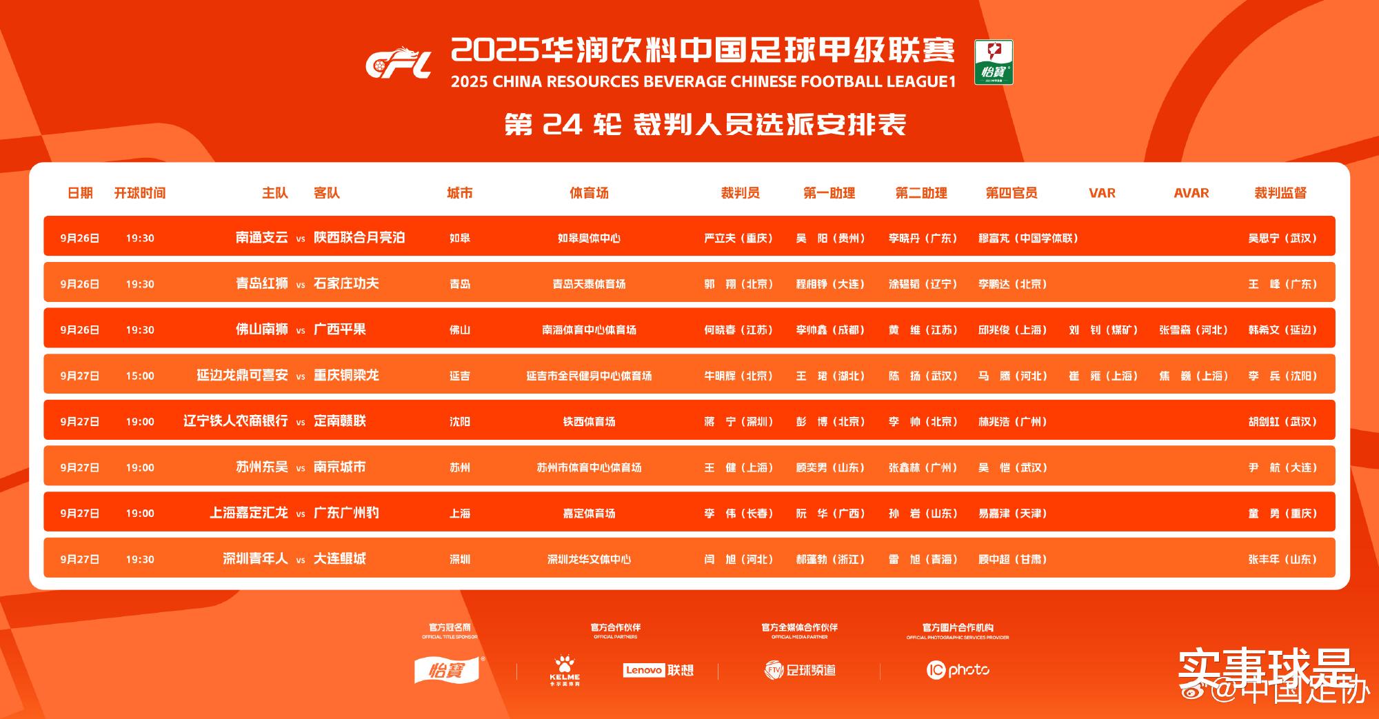 9月26日,就在2025赛季中超第26轮打响时直播吧足球新闻,本赛季中甲第24轮、中乙第27轮,也激战正酣。其中,4场涉及冲超(冲甲)和保级的赛事 ,还安排了视频裁判 (VAR)。