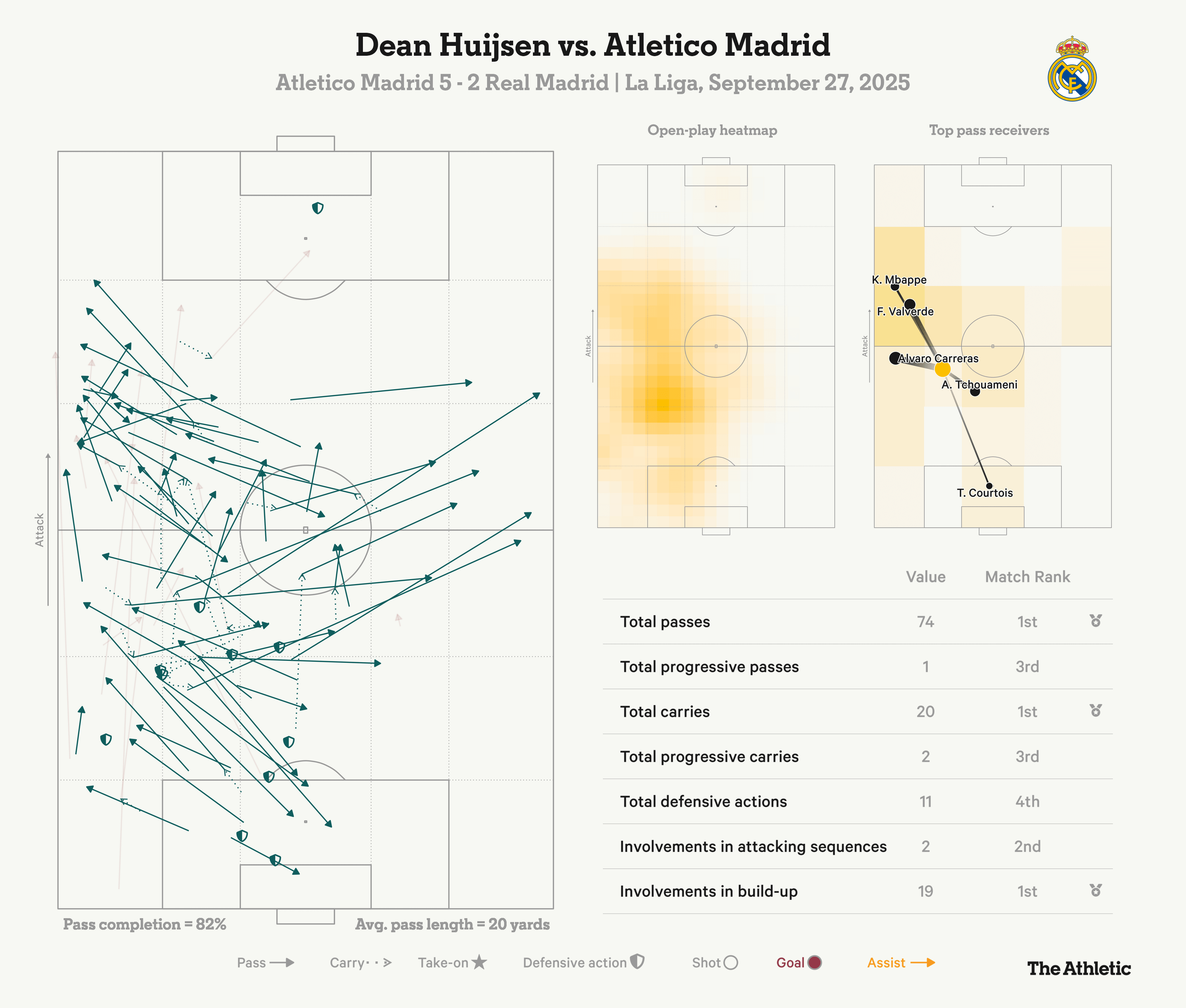 赛后,西蒙尼和多名马竞球员明确提到,他们是如何针对皇马防线展开攻击的。通过直接传送球 和聪明的跑动,赫伊森和卡雷拉斯经常被迫退守至更深的位置,接近危险区域 ,卡雷拉斯成为了马竞攻击 的主要目标。