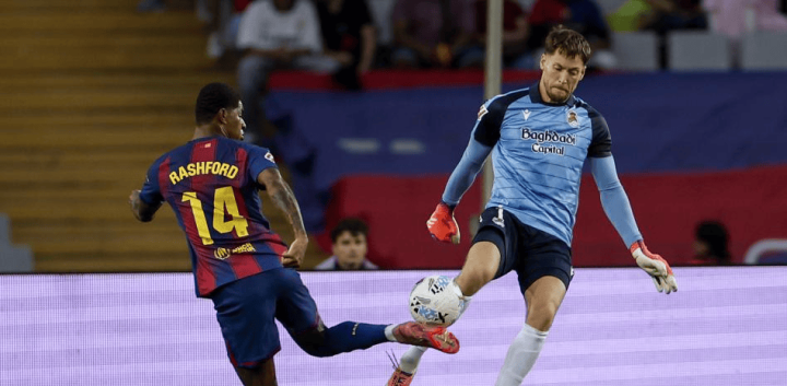 虎扑09月29日讯在对阵巴塞罗那的赛事 中,守门员雷米罗无疑是皇家社会表现最出色的球员,尽管球队最终1-2不敌巴萨,但这位守门员却如同一堵墙,全场做出8次关键抢救 ,同时他的出球也几乎完美,帮助球队控制了节奏并保持策略 均衡 。