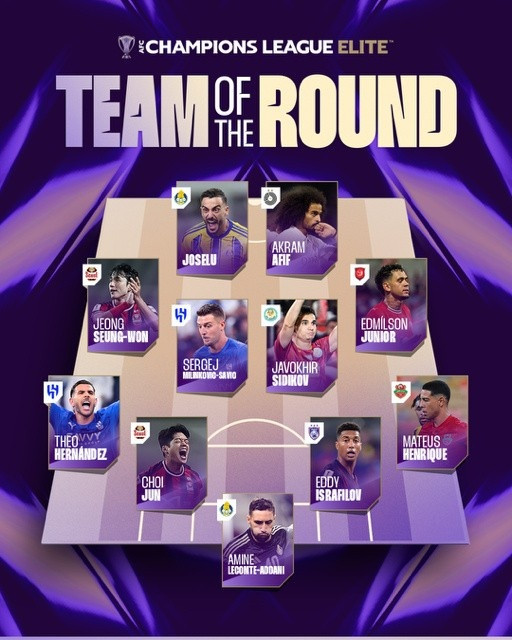 后场球员:特奥(利雅得新月)、崔浚(首尔FC)、伊斯拉菲洛夫(柔佛新山)、马特乌斯-恩里克(迪拜国民)
