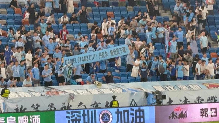 因此在现场球迷看台上,已经出现球迷高举要求施坦茨下课的横幅!