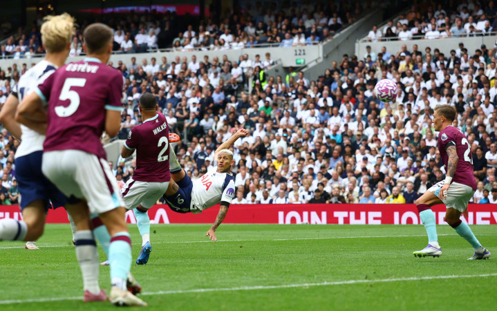 门前的理查利森打出一脚很漂亮的射球 ,热刺借此扩大了比分优势。