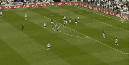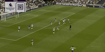所以在主场作战 作战的情况下,热刺的开局依然很强势,开局30秒就用传中打出攻击 威胁: