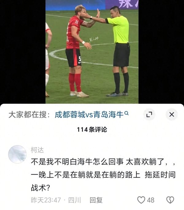 青岛海牛被违例 20次却被成都球迷诽谤卧草, 李霄鹏曾为此怒斥爱将青岛海牛做客成都凤凰山运动场 足球新闻蔡一睿最新消息今天,在一场保级关键战中被多线作战的成都蓉城逼平,这个结果很难令双方满意,但也都能勉强接受。不过笔者在某自媒体平台刷新闻时,发现大量蓉城球迷通过发布视频或回复评论的方式,抱怨青岛海牛一直卧草拖延时间,这让笔者看了感觉极为滑稽可笑,颇有一番得了便宜卖乖的意味。相信只要关注这场赛事