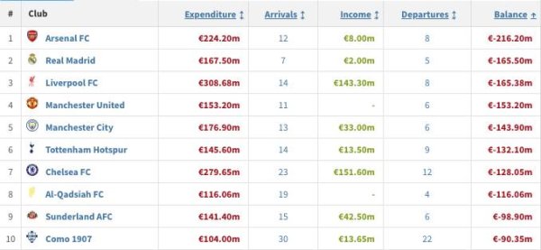 若谢什科加盟,曼联大概率将暂时登顶今夏俱乐部净支出榜北京时间8月6日,根据多个信源的消息,拒绝了纽卡山东壹睿安装工程有限公司,希望加盟曼联,曼联正在与RB莱比锡进行转会费的谈判。目前媒体给出的预计转会费并不一致,但大多在8000万左右,所以一旦这笔转会完成,曼联大概率将暂时成为今夏净支出最高的球队。 在利物浦售出迪亚斯后,目前该位置被阿森纳所拥有。而曼联距离阿森纳的净支出差额为6