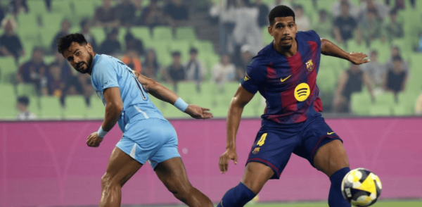 阿劳霍: 我在巴萨很开心, 100%留队, 并且愿意接受后防角逐一一直播足球直播 虎扑08月05日讯巴萨5-0大胜大邱FC,正式结束亚洲行。 在周一杆位的罗纳德-阿劳霍赛后与汉斯-弗里克一同出现在媒体面前,明确了自己的未来打算。尽管这位乌拉圭中后场球员去年1月曾一度接近离开巴萨加盟尤文图斯,但如今他改变了主意,目前没有考虑转会。 当被问及是否100%确定会留在巴萨时,阿劳霍强调道:“当然。我