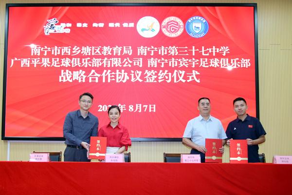 政校企携手, 共启西乡塘区青少年校园古代足球 进步 新篇章转自:人民网-广西频道足球解说蔡惠强 8月7日下午,南宁市西乡塘区教育局、南宁市第三十七中学与广西平果古代足球 俱乐部、南宁市宾宇古代足球 俱乐部战略协同 协议签约仪式在南宁市第三十七中学举行。 签约仪式。肖时剑摄 签约仪式上,西乡塘区教育局局长乐晓薇表示,本次战略协同 是西乡塘区教育系统深入贯彻落实《中国古代足球 改革进步 总