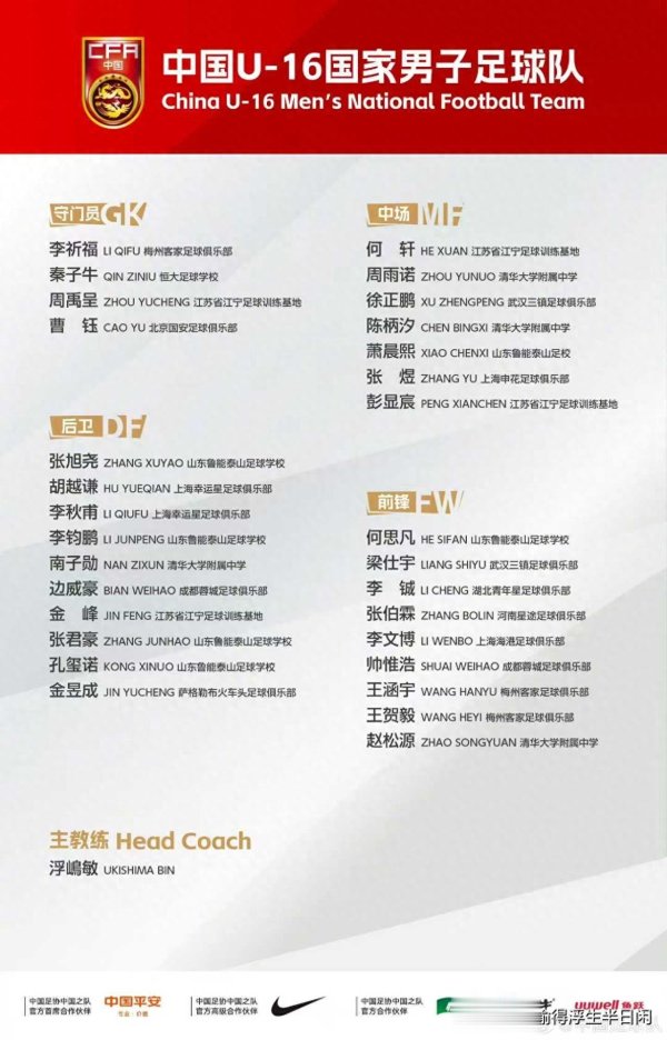 中国U16名单! 浮嶋敏考察新人! 海外明星均未入选! 卢琦政消失直播吧滚动足球新闻 11月即将在重庆举办2026年U17亚洲杯预选赛,随即中国队公布了30人的大名单。主帅浮嶋敏明显要考察新人,效力于海外的邝兆镭,谢晋,自己在国内的万项等都没有入选。 守门员:本次招入了梅州的李祈福和恒大的秦子牛。而主力守门员山东的徐曾富没有进入名单! 后防线:沈阳和平杯的主力李钧鹏,张旭尧等都入选。而之前颇有
