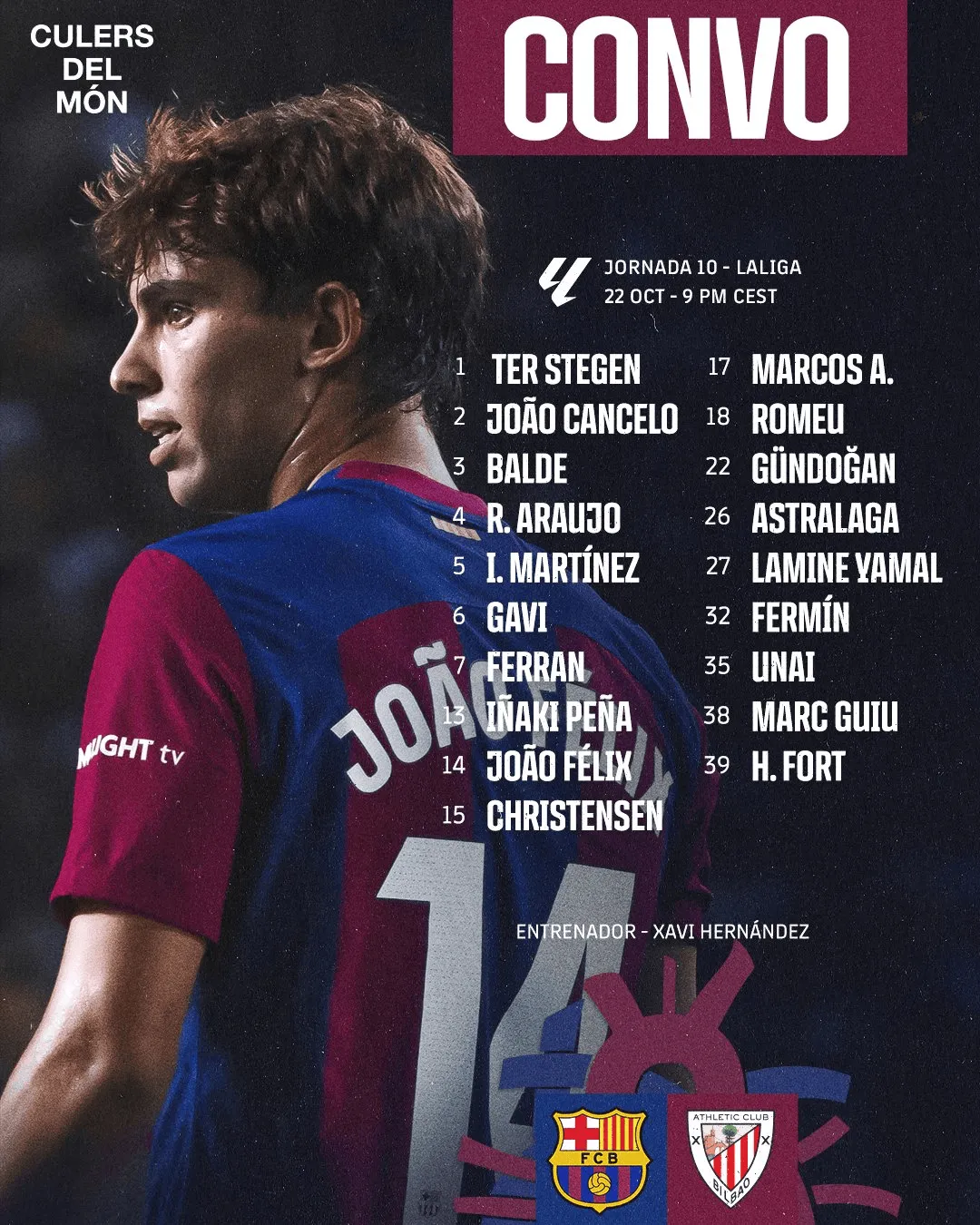 镇守豪华阵形 , 巴塞罗那欲应战 巴斯克劲旅!火热的西甲职业联赛 即将迎来一场焦点战巴西足球新闻,巴塞罗那将在蒙锥克山的路易斯-孔帕斯奥林匹克运动场 迎战来势汹涌的毕尔巴鄂竞赛 。这场赛事 也备受瞩目,因为巴萨公布了一份极为惊艳的大名单。 近期受伤 困扰的巴塞罗那队伍终于看到了曙光,亚马尔和巴尔德获得了医疗许可复出。这无疑是给球队士气增添了一抹亮色。然而,莱万多夫斯基、佩德